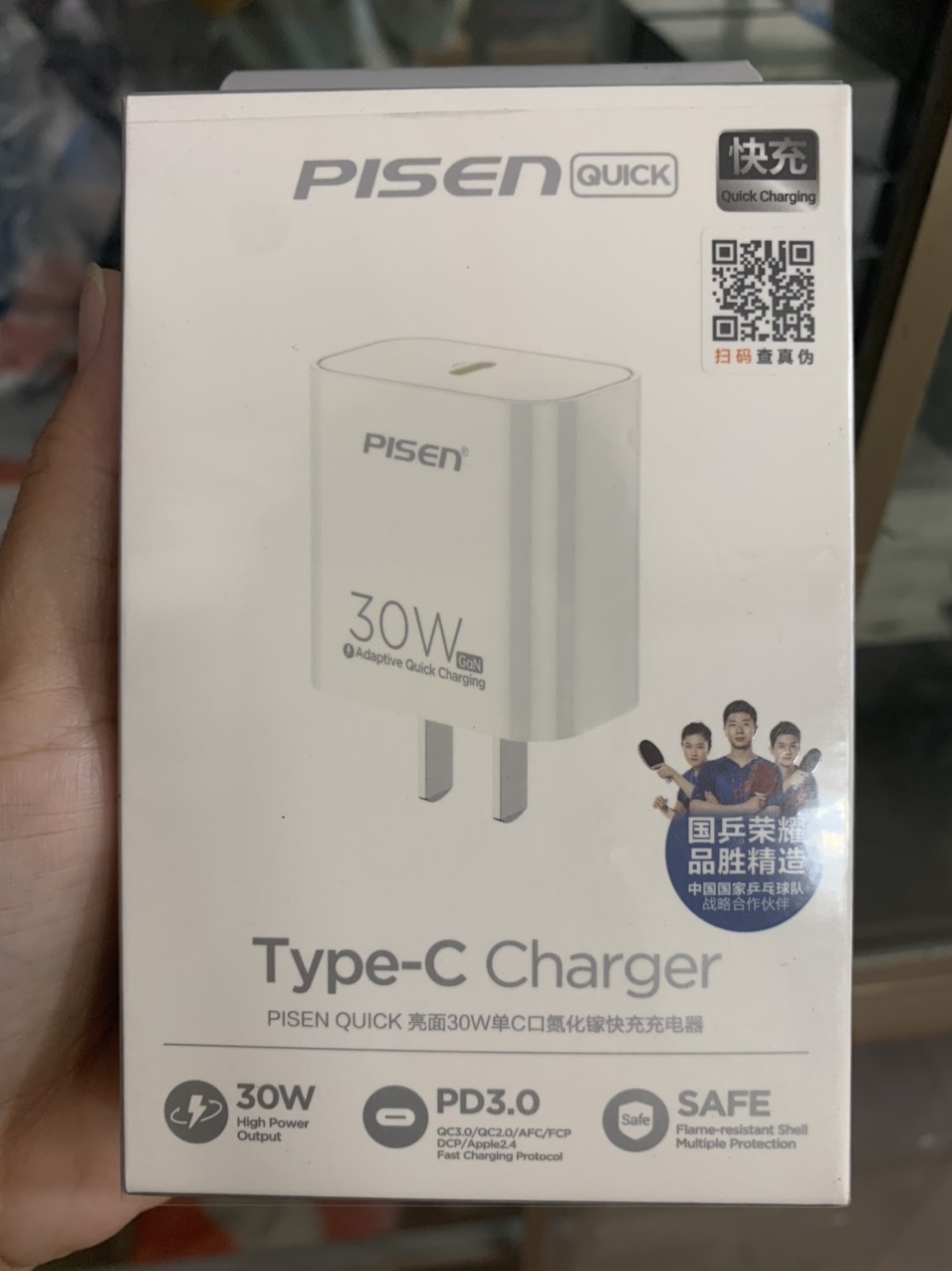 Cóc sạc điện thoại chính hãng Pisen, sạc nhanh 30W cổng TypeC, bảo hành 12 tháng tại HADOWA.COM Cóc sạc điện thoại chính hãng Pisen, sạc nhanh 30W cổng TypeC phù hợp với hầu hết các dòng điện thoại hỗ trợ sạc nhanh hiện nay, miễn sao cáp của bạn có đầu Typc là được, mẫu này tối ưu nhiều cho iP 15, giúp sạc nhanh điện thoại của bạn 50% chỉ trong 30 phút.